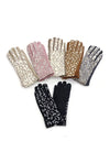 Extra soft glove with touch finger for smartphone or tablet, leopard pattern, one size extendable to any size, in faux suede polyester.